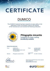 eurolaser ha probado los siguientes materiales de Dumico en las máquinas láser de corte: