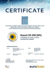 eurolaser a testé les matériaux suivants de RAASCH sur les machines de découpe laser :